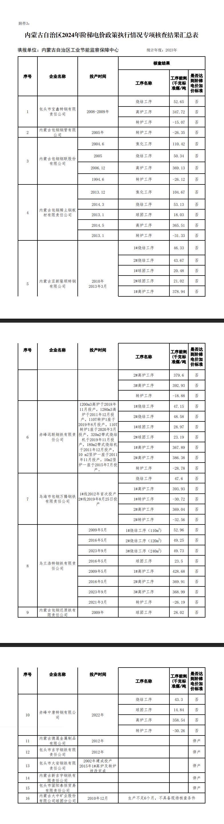 3.2024年內(nèi)蒙古自治區(qū)鋼鐵企業(yè)階梯電價(jià)能耗核查結(jié)果匯總表