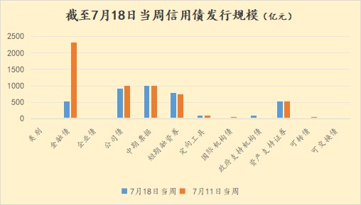 信用債方面(下圖),上周共發(fā)行488只,環(huán)比減少19只,規(guī)模3,978.78億元,環(huán)比減少1,763.30億元;具體品種方面,金融債上周發(fā)行26只,共535.5億元;企業(yè)債發(fā)行1只10億元;公司債發(fā)行133只,共916.92億元;中期票據(jù)發(fā)行111只,共1,006.64億元;短期融資券發(fā)行85只,共775億元;定向工具發(fā)行17只,共94.8億元;資產(chǎn)支持證券發(fā)行112只,共532.92億元;政府支持證券發(fā)行2只共100億元;可交換債發(fā)行1只7億元;國(guó)際機(jī)構(gòu)債上周未發(fā)行。
