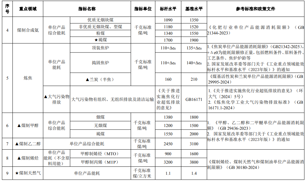 為貫徹落實黨中央、國務院決策部署,推動煤炭產(chǎn)業(yè)由低端向高端、煤炭產(chǎn)品由初級燃料向高價值產(chǎn)品攀升,按照《國家發(fā)展改革委等部門關于加強煤炭清潔高效利用的意見》(發(fā)改運行〔2024〕1345號),經(jīng)商有關方面,現(xiàn)發(fā)布《煤炭清潔高效利用重點領域標桿水平和基準水平(2025年版)》,并就有關事項通知如下。
