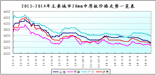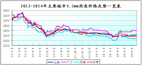6、主導(dǎo)鋼廠價(jià)格穩(wěn)中有降。寶鋼、首鋼、武鋼、鞍鋼7月份價(jià)格維持平穩(wěn),河鋼下調(diào)7月份熱卷、中厚板價(jià)格100元/噸。在市場(chǎng)季節(jié)性需求疲軟、資金面偏緊等因素下,平盤鋼廠也通過暗降、優(yōu)惠幅度加大等來吸引訂單。