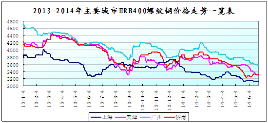 6月份國(guó)內(nèi)鋼市整體震蕩下滑,其中長(zhǎng)材跌幅明顯。6月份,鋼材市場(chǎng)進(jìn)入需求淡季,高溫多雨工程施工受阻、制造業(yè)夏休增多,需求明顯減少;鋼材期貨弱勢(shì)難改,創(chuàng)出2009年上市以來新低;進(jìn)口鐵礦石價(jià)格大幅下滑,鋼廠成本支撐減弱,鋼材價(jià)格持續(xù)下跌;中下旬,隨著央行降準(zhǔn)及微調(diào)刺激政策陸續(xù)出臺(tái),宏觀面利好消息對(duì)鋼價(jià)有所提振,現(xiàn)貨市場(chǎng)跌幅有所減緩。截止24日,山東省內(nèi)市場(chǎng)三級(jí)螺紋鋼價(jià)格3040-3060元/噸,較上月末下跌160元/噸;厚規(guī)格熱卷價(jià)格3300-3350元/噸,較上月末下跌10元/噸;中板價(jià)格3340-3400元/噸,較上月末下跌40-50元/噸;H型鋼中小規(guī)格價(jià)格3080-3110元/噸,普通大規(guī)格價(jià)格3030-3060元/噸,較上月末下跌70-100元/噸;45#鋼價(jià)格3360-3380元/噸,較上月末下跌90元/噸。