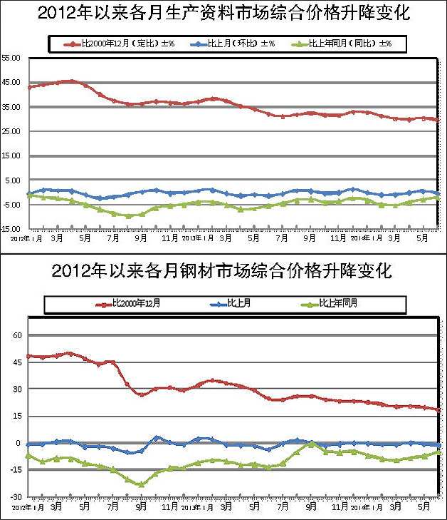 6月份,我國生產(chǎn)資料市場價(jià)格受到產(chǎn)能過剩矛盾突出、市場供大于求壓力較大等因素的影響,環(huán)比下降0.53%;同比下降1.94%,降幅環(huán)比收窄0.93個(gè)百分點(diǎn)。1月~6月份,我國生產(chǎn)資料市場價(jià)格累計(jì)同比下降3.82%。