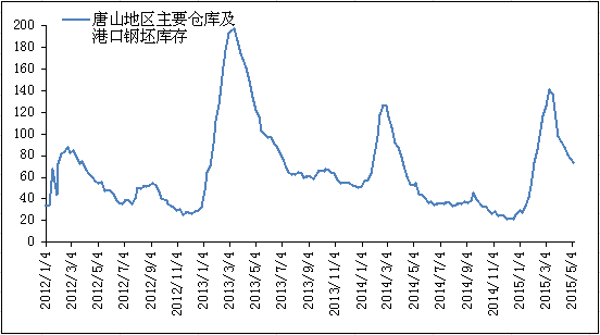 圖3 唐山地區(qū)主要倉庫及港口鋼坯庫存走勢(shì)圖